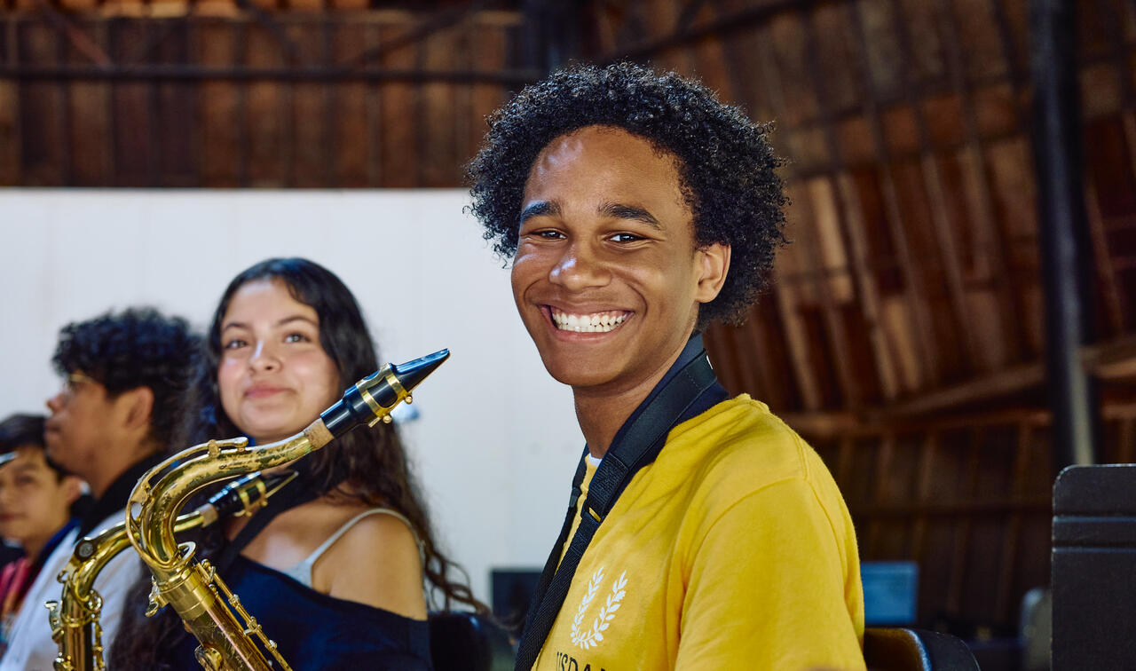 A keystone department since the founding of Usdan in 1968, the Music Department is led by the finest conductors and instructors in the area and has launched students into conservatory programs, music education careers, and professional performance careers. Notable alumni include Juilliard conductor Adam Glaser; LA Phil musician Elyse Lauzon; and singers Jane Monheit and Mariah Carey. In addition, we offer Leadership opportunities for our high school-aged students, where they gain valuable work experience serving as mentors to younger students and assisting in camp operations. Unlike more traditional music day programs in the New York City area, Usdan’s program immerses students in nature on our beautiful 140-acre campus and combines the joys of summer camp with top-notch instruction. Students leave Usdan not only with improved skills but also with meaningful friendships and boosted confidence. Our program is inclusive, welcoming, and nurturing. We value process over product and joy above all else. Read more.